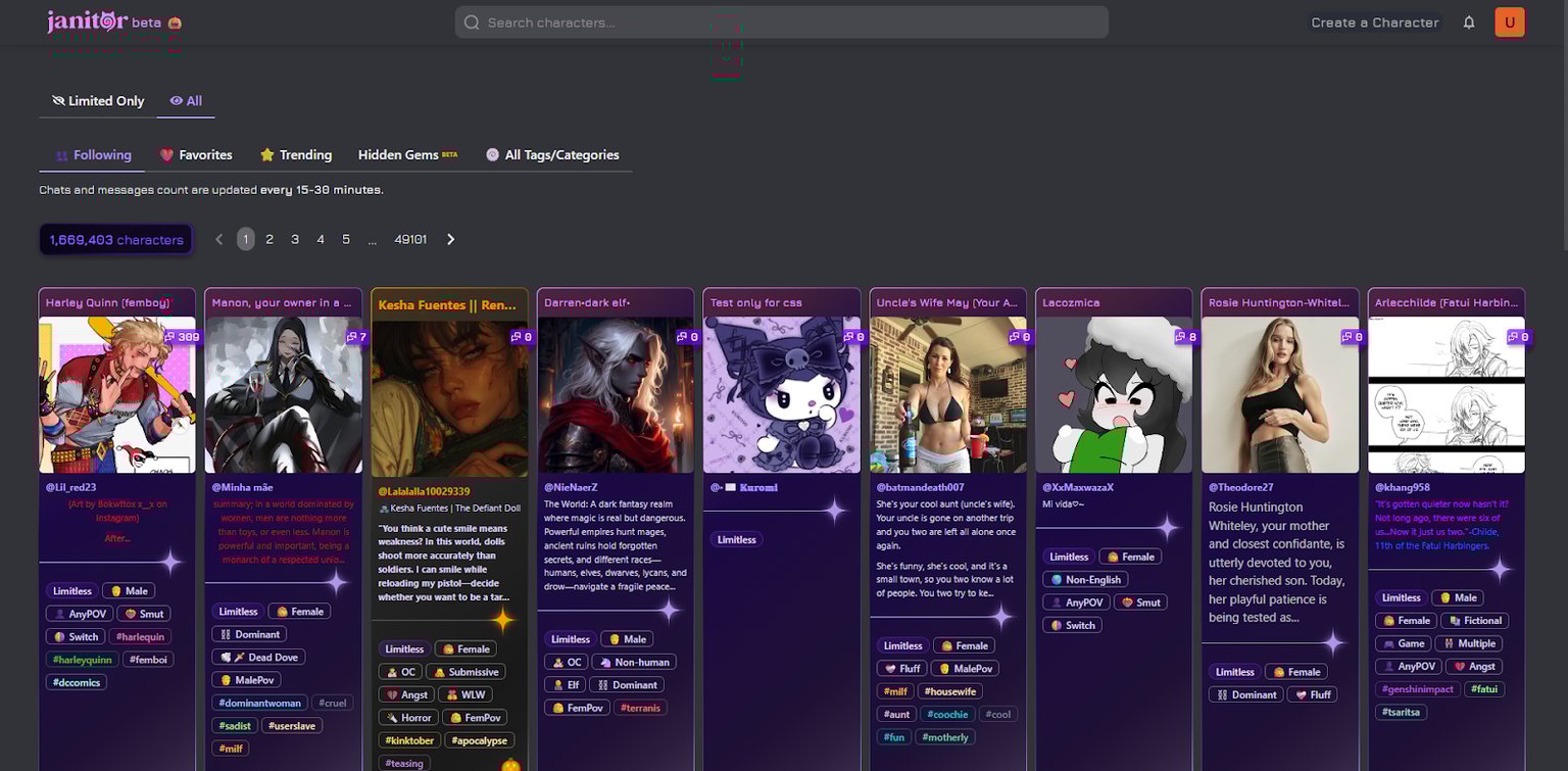 2. Janitor AI — NSFW AI Characters With Custom Personality and Filter Settings