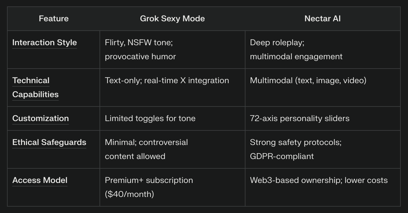 Grok Sexy Mode VS Nectar AI