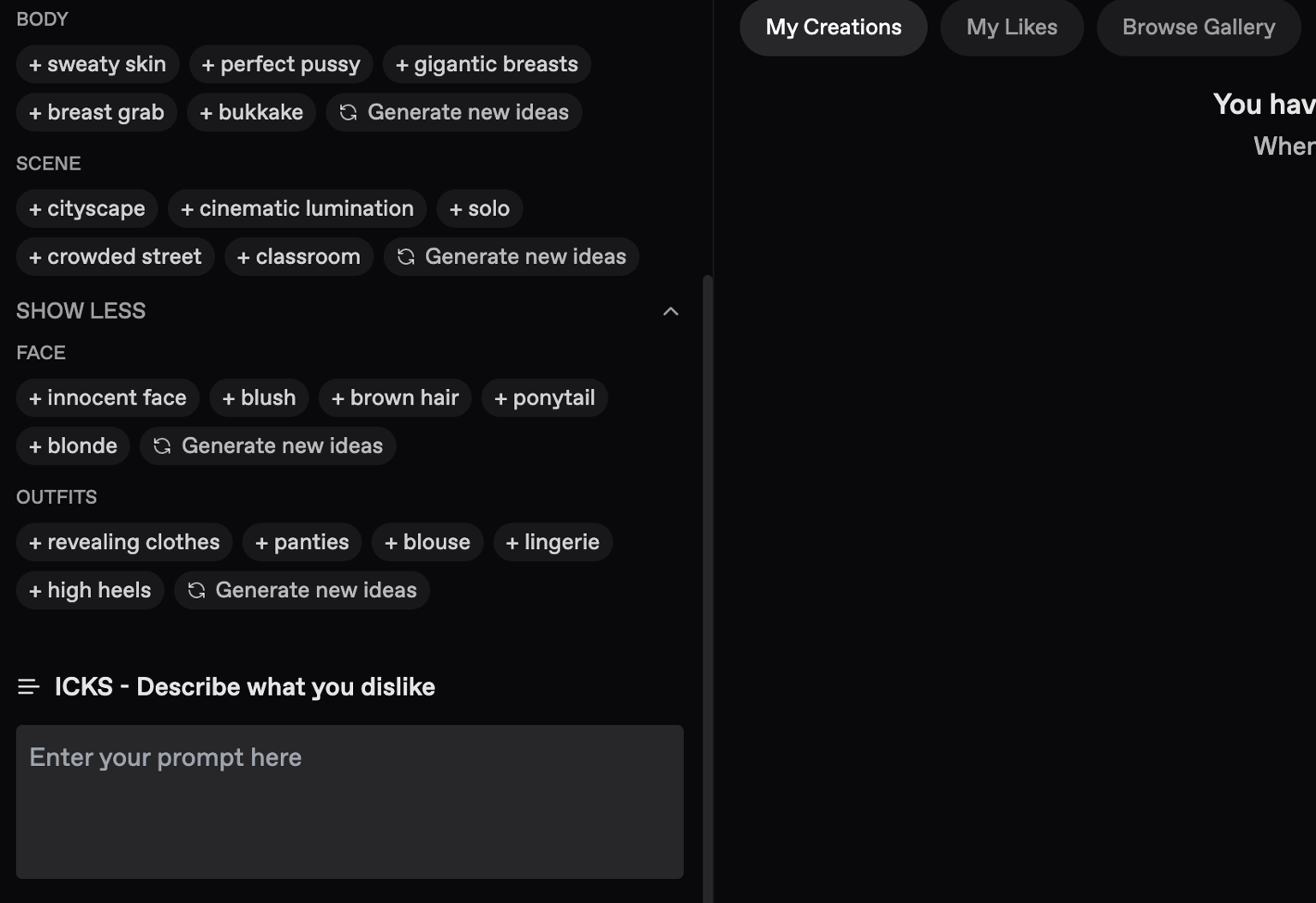 Netar gives you a lot of constimization controls on the final result of the character. Below the promot field, you ca also specify various other parameters like the scene, the face, outfit, and even describe her icks.