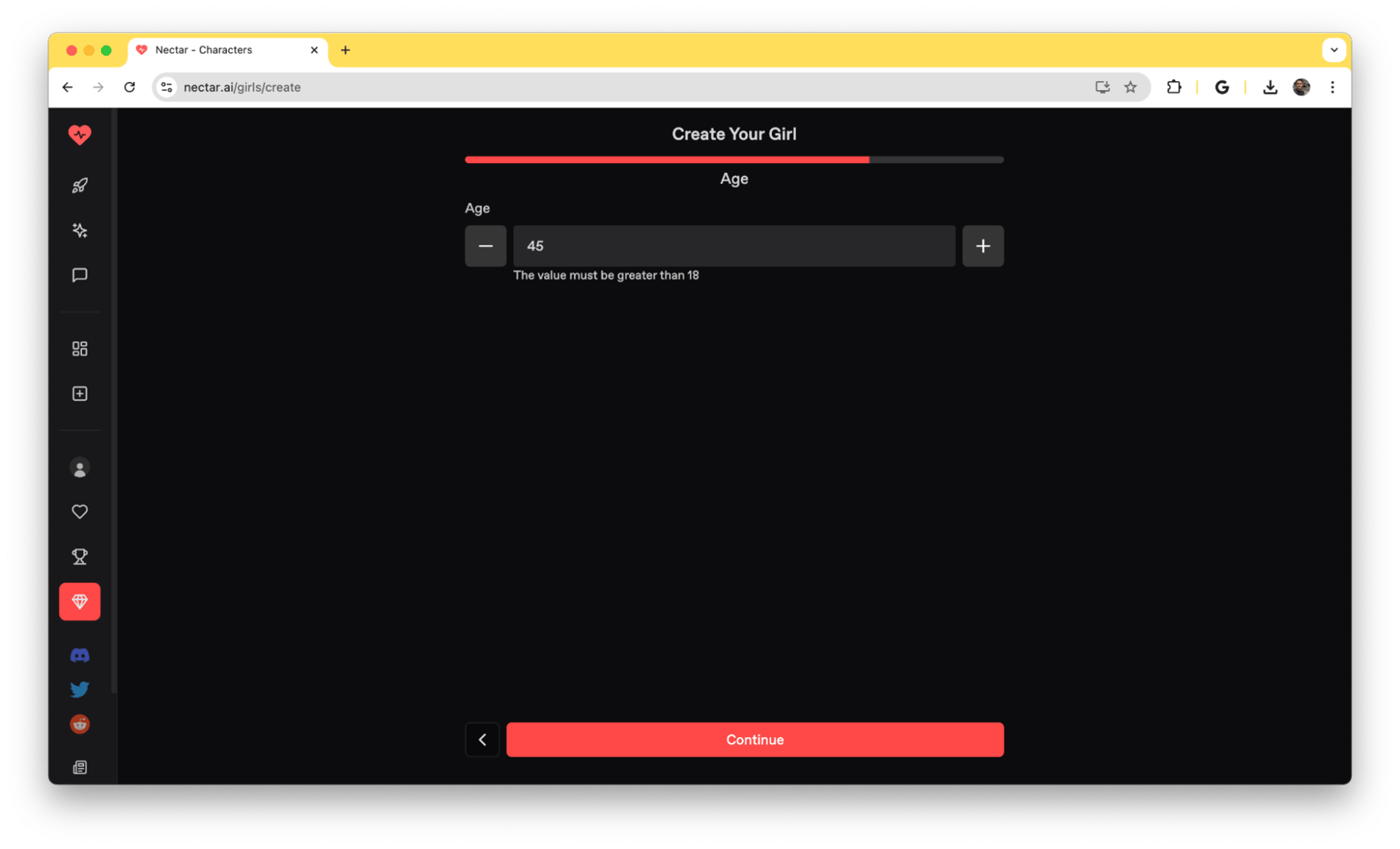 Creating your ideal MILF girlfriend on Nectar AI is a straightforward process. Head over to Nectar.ai and create an account for free. Next, go to your profile page and click on the “Create companion” button. Try creating your AI companion.