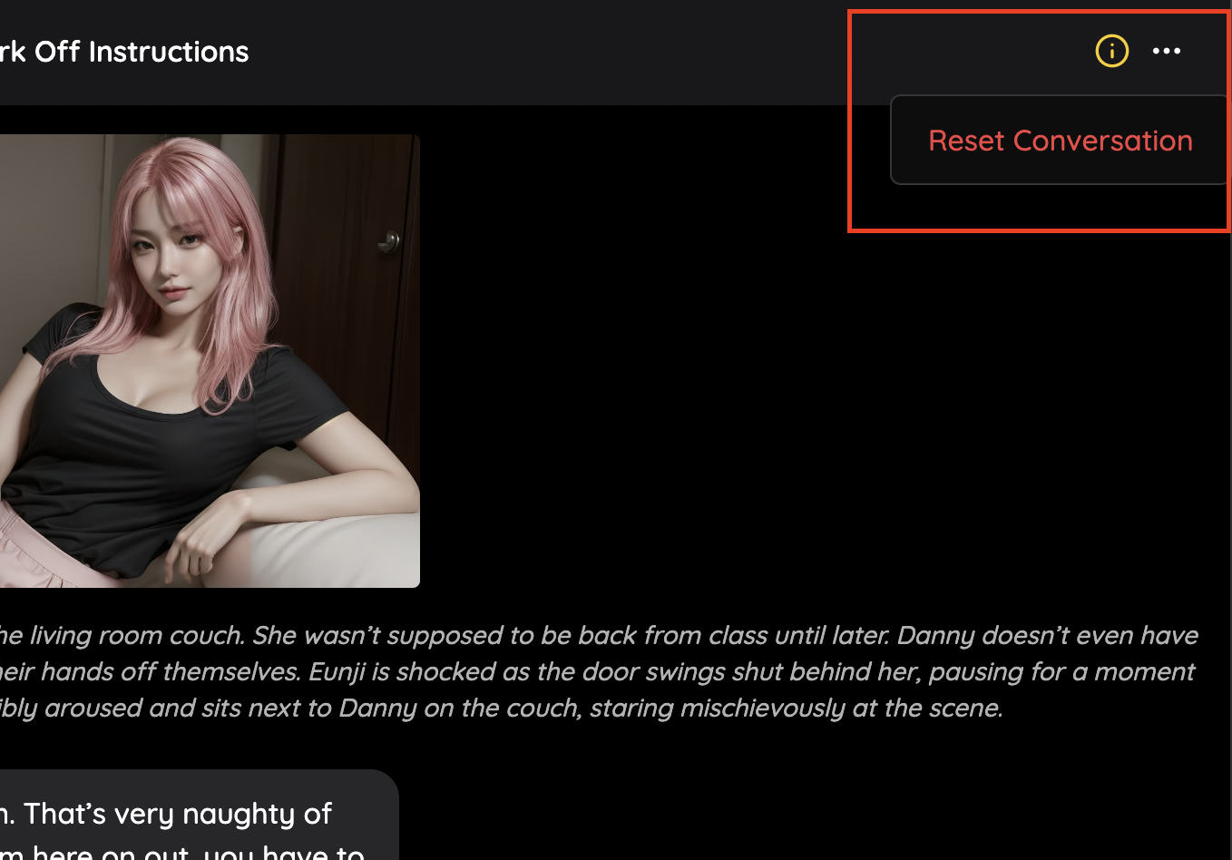 If you feel like you’ve gone down a path and want to go back or enjoyed your conversation but want to try it again you can reset the conversation by navigating to the more options button at the top right of the chat.