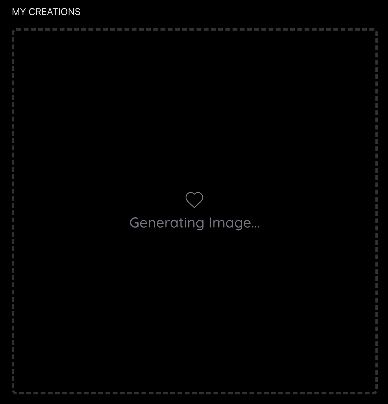 The last step is to hit the Create button. As soon as that happens, you will see the "My Creations" tab populate with an icon telling you your image is being generated. Depending on whether you have selected HD or not, generation time can range. We pride ourselves on having one of the fastest generation times in the market.